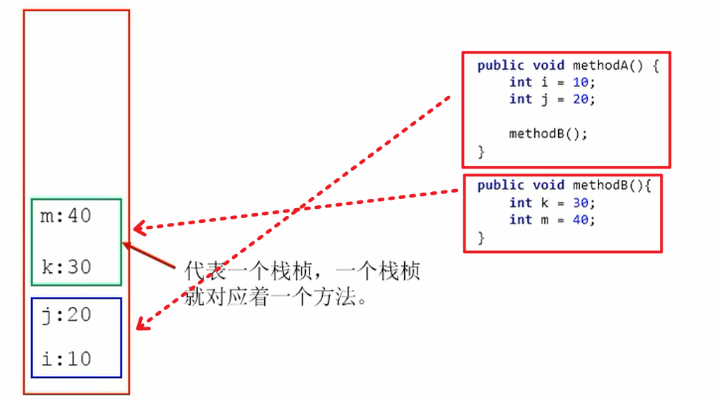 - 每个方法执行,伴随着进栈(入栈、压栈)