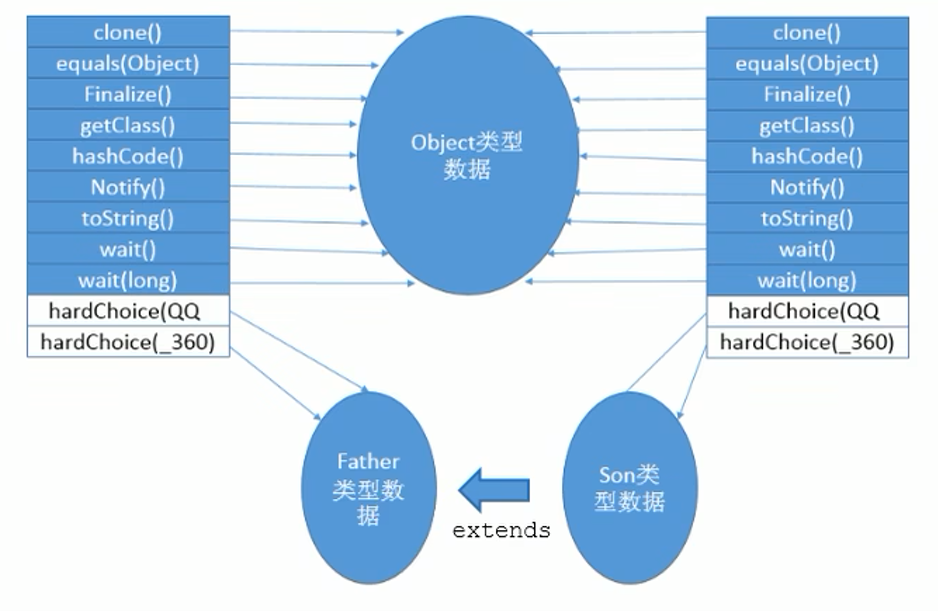 每个类中都有一个虚方法表,表中存放着各个方法的实际入口。