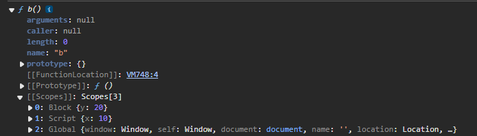 如果函数外层引用的是 let 变量,那么外层普通的 {} 也会作为作用域边界,最外层的 let 也占一个 script 作用域